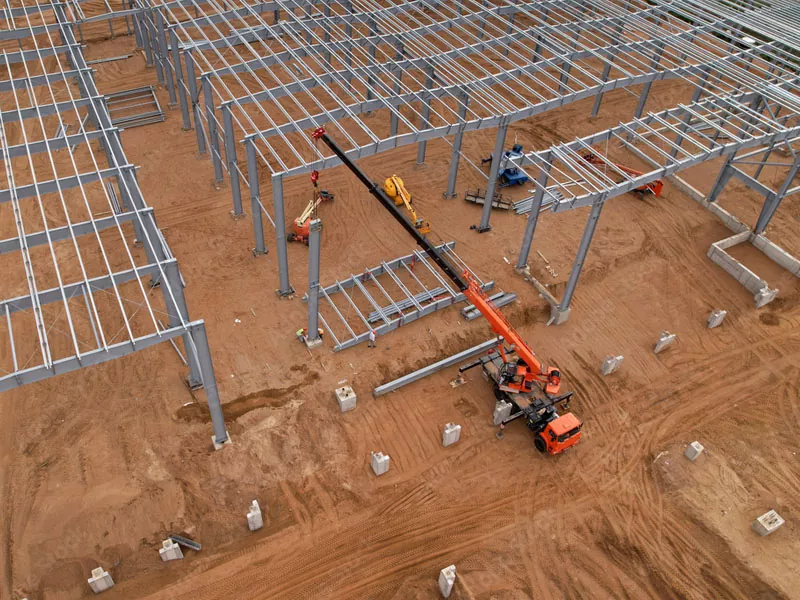 Čelične komponente, uključujući grede, stupove, nosače i krovne rešetke, montažne su u tvorničkoj postavci. Koristi se visokokvalitetni čelik, a komponente se izrađuju kako bi se precizne specifikacije osigurale da se oni precizno i sigurno uklapaju tijekom instalacije. Ovo kontrolirano okruženje omogućava stroge mjere kontrole kvalitete, osiguravajući trajnost i pouzdanost komponenti.