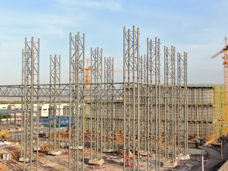 Konstrukcija skladišta čelične strukture učinkovita je, ekonomična i ekološki prihvatljiva metoda izgradnje. Proces izgradnje uglavnom uključuje izgradnju temelja, instalaciju glavne građevine, podupiranje postrojenja i kasnije održavanje. Izgradnja temelja je polazište cijelog procesa izgradnje. Potrebno je odrediti oblik i veličinu temelja prema razmjeru skladišta i geoloških uvjeta kako bi se osigurala stabilnost i sigurnost skladišta. Instalacija glavne strukture je osnovna veza, uključujući podizanje, pozicioniranje, korekciju i povezivanje komponenti poput čeličnih stupova, čeličnih greda, krovnih rešetki i zidnih ploča.