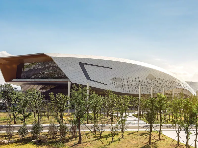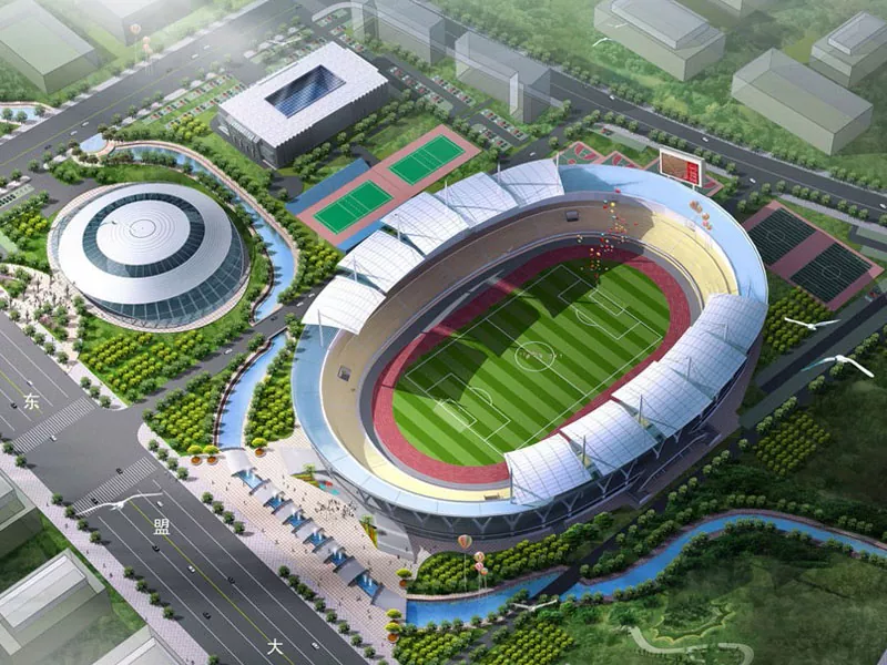 Kompleksi čelične strukture Sports Center izrađeni su čelikom visoke čvrstoće kako bi se stvorile prostorne rešetke s velikim rasponom i retikulirane školjke, postižući super velika mjesta bez stupaca koja se fleksibilno prilagođavaju zahtjevima sportskih događaja, performansi i multifunkcionalnih aktivnosti. Korištene su tvorničke montažne komponente i tehnike modularnog montaže, smanjujući razdoblje izgradnje za 40%, minimizirajući zagađenje i buku na licu mjesta. Uz to, integriraju inteligentnu kontrolu temperature, fotonaponske krovove i sustave za recikliranje kišnice, smanjujući potrošnju energije za preko 30%. Izvanredna seizmička i vjetrovića otpornost čelika osigurava sigurnost, dok pojednostavljeno čelično fasada i prozirni zidovi zavjesa stvaraju modernu značajnu sliku. Oni su izdržljivi i održivi, ​​koji predstavljaju učinkovit, zeleni i inteligentni sportski objekt.